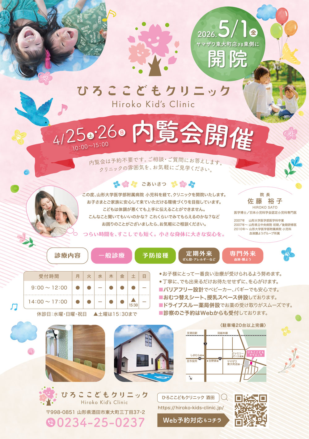 4/25(土)・26(日)に内覧会を開催いたします。 内覧会は予約不要です。ご相談・ご質問にお答えします。 ひろここどもクリニックの雰囲気をお気軽にご見学ください。